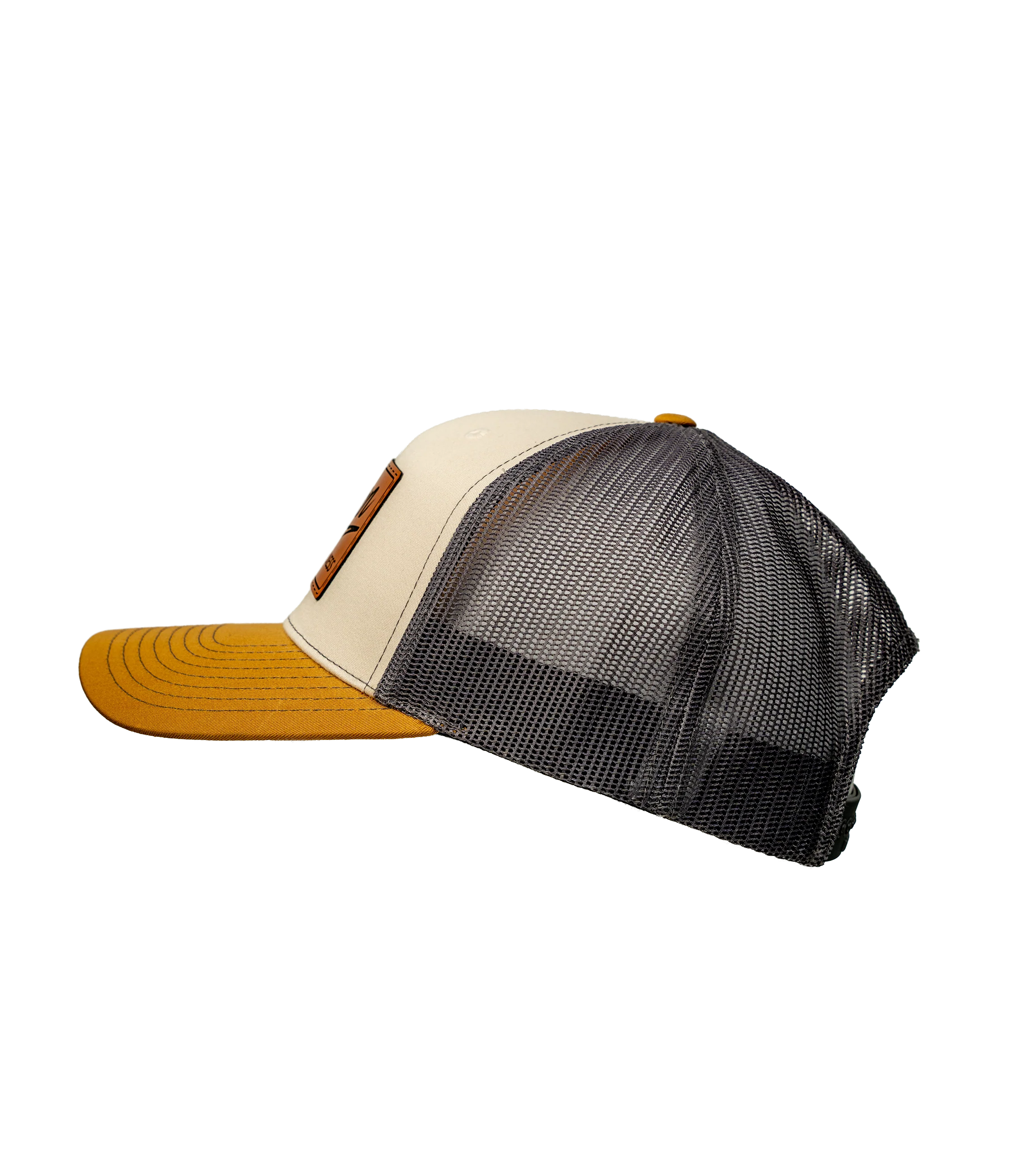 - Structured trucker-style cap featuring a solid front panel, breathable mesh back, and curved brim for maximum comfort throughout the day